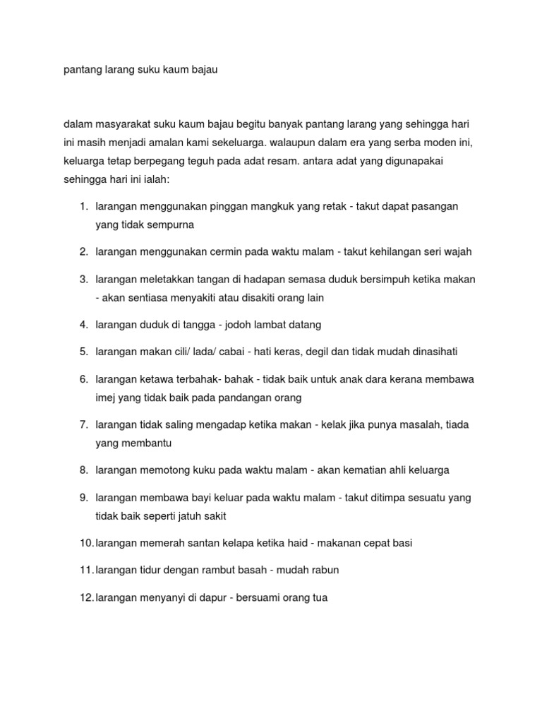 Pantang Larang Suku Kaum Bajau Pdf