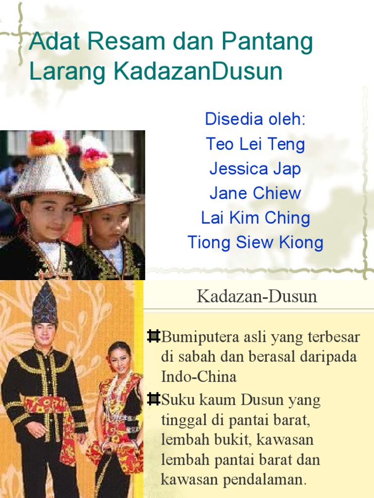 15 Kaum Kadazan Dusun merupakan nama kaum bumiputera asli yang terbesar di Sabah. Selain itu kajian ini dibuat untuk mendedahkan adat tradisi perkahwinan kaun kadazandusun yang. Pantang Larang Kadazan Dusun.